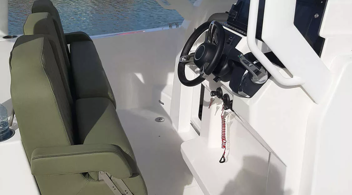 2 x 400 HP Mercury motora sahip olan tekne, testlerimizde deniz milinde yalnızca 3L yakıt tükettiğini gösterdi. 7 kişi ile birlikte 60 knot maksimum hıza ulaşabilir. Bu ağırlık/güç oranı, aynı boyuttaki sert bir tekneden %30 daha az yakıt tüketimi anlamına gelir. 760 litrelik yakıt tankı ise yaklaşık 250 deniz mili menzil sunar.